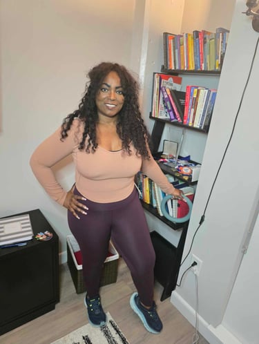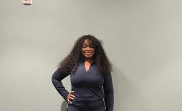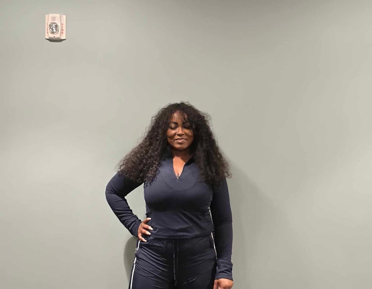 Coach Ebony has over a decade of experience in the fitness industry, and her journey took a transformative turn two years ago when she discovered Pilates. Recognizing that this low-impact practice aligned perfectly with her evolving fitness needs as she aged, she pursued and obtained her comprehensive Pilates certification.
